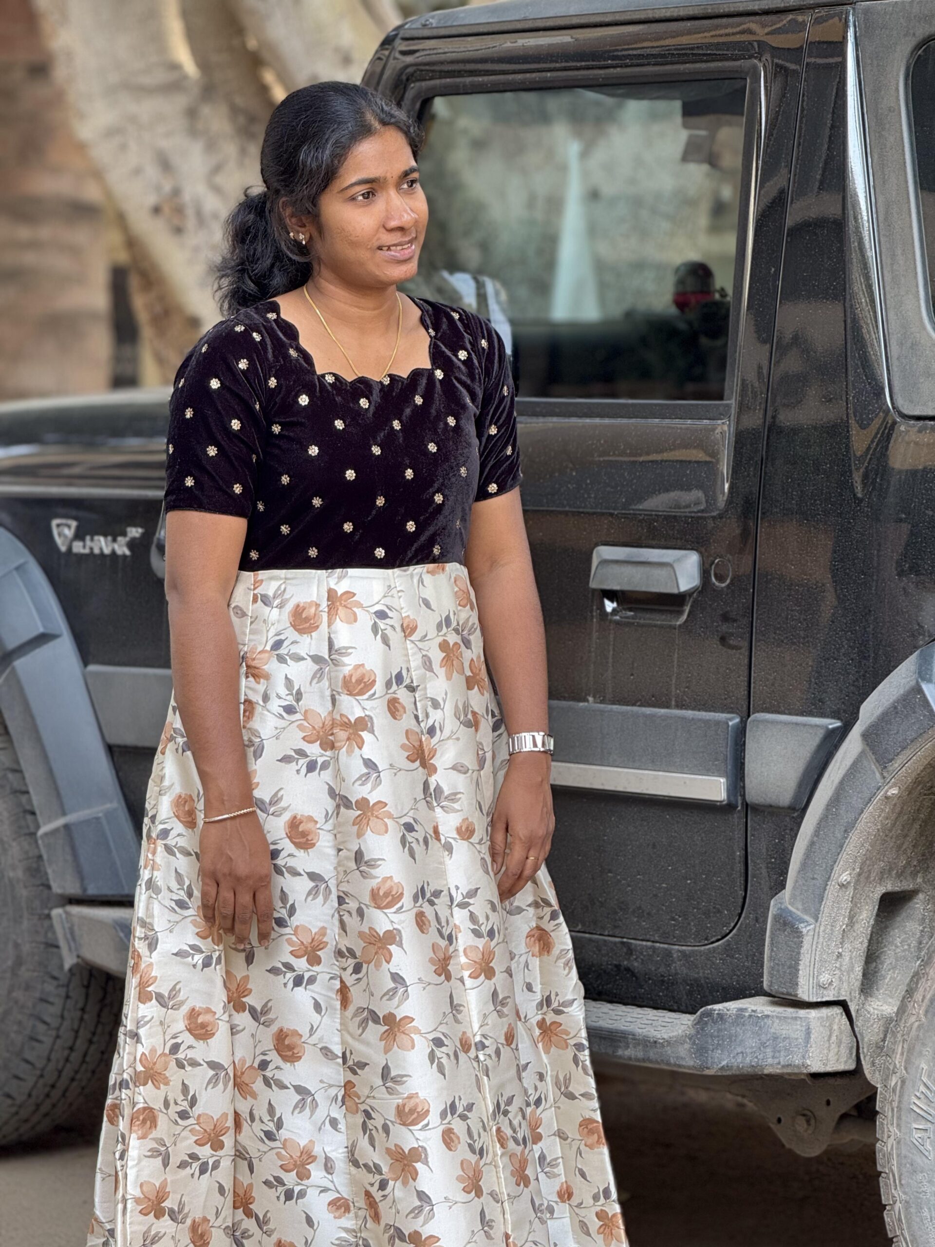 Fabric: Floral Printed Modal silk(bottom), Designed velvet (top)