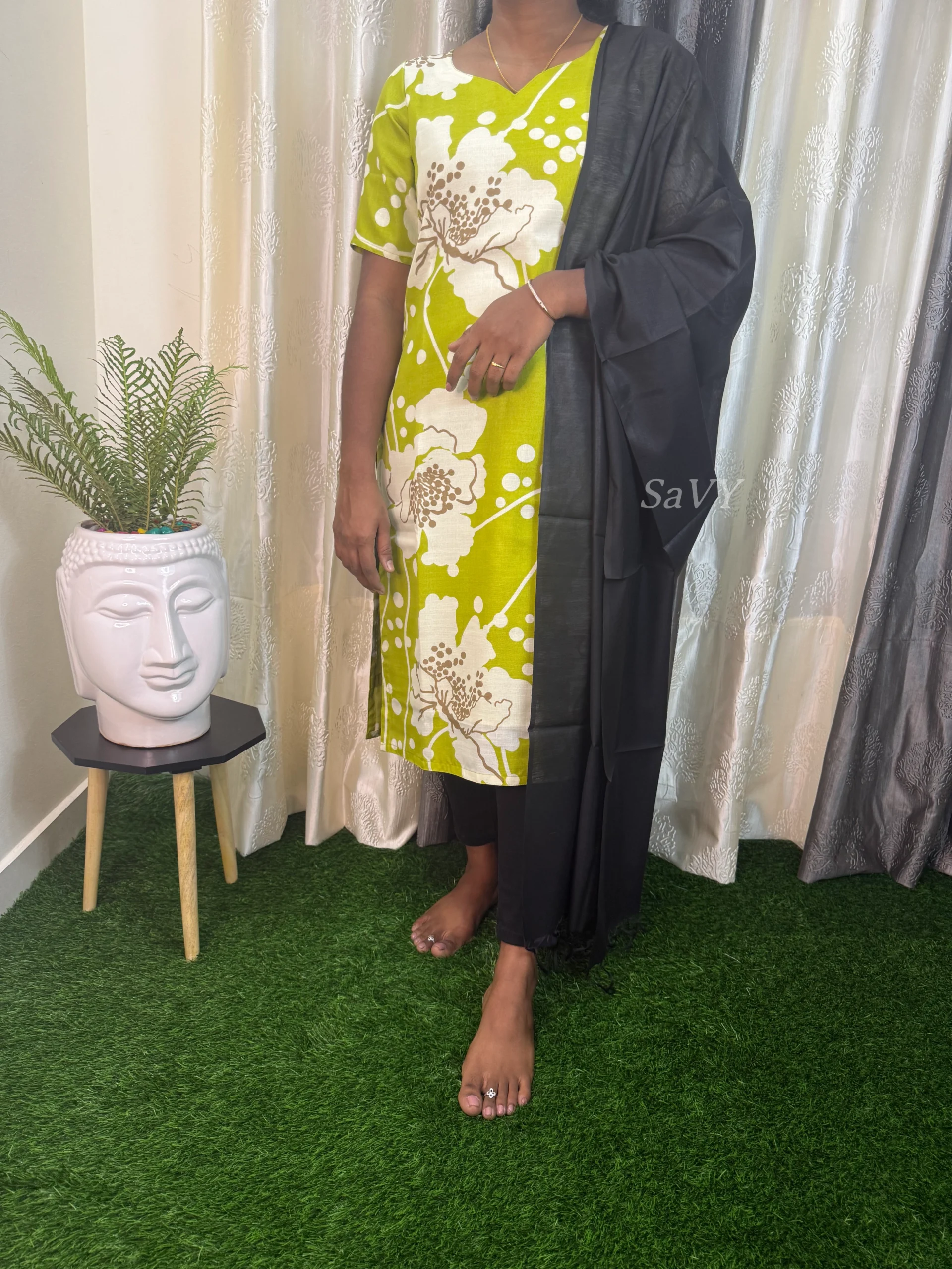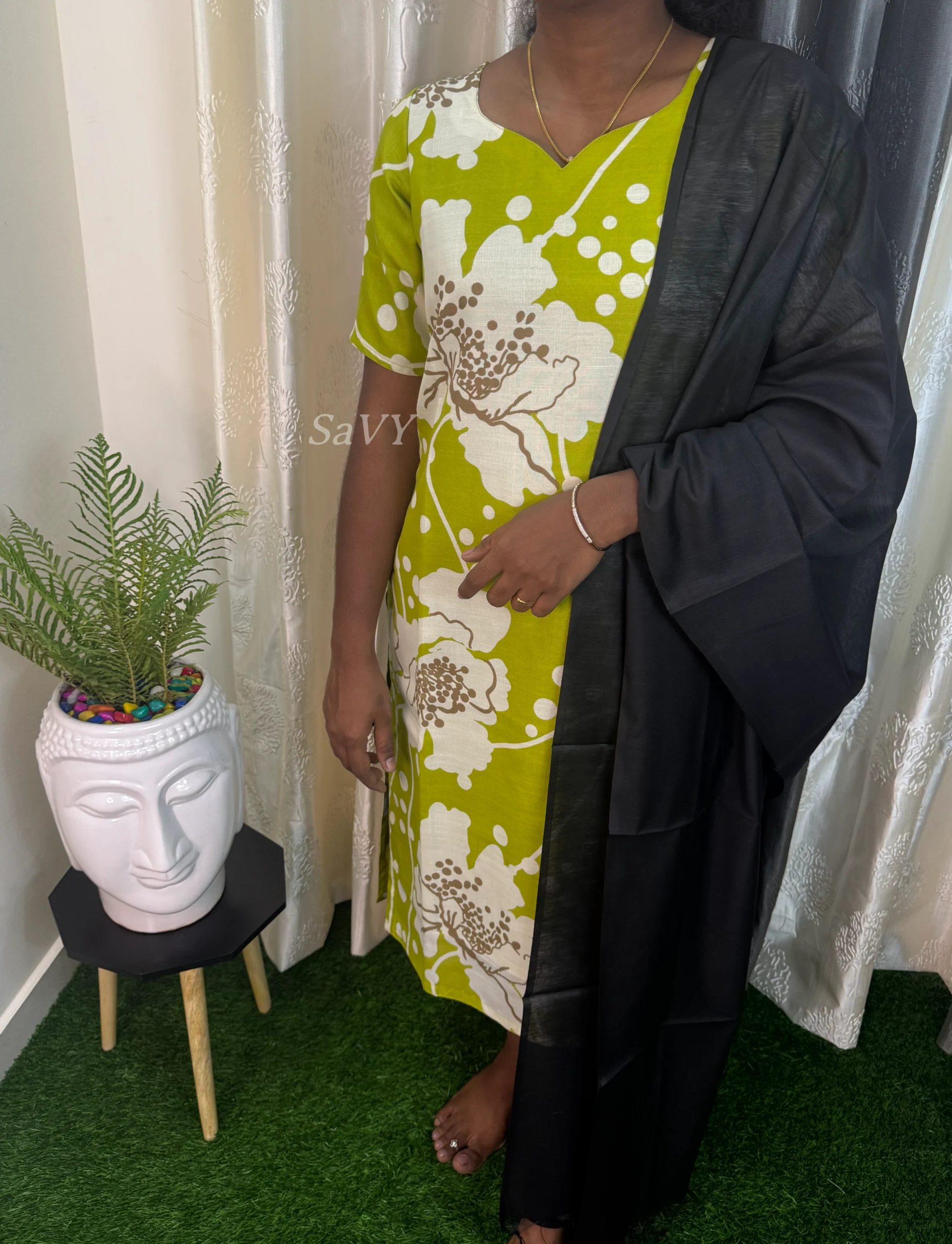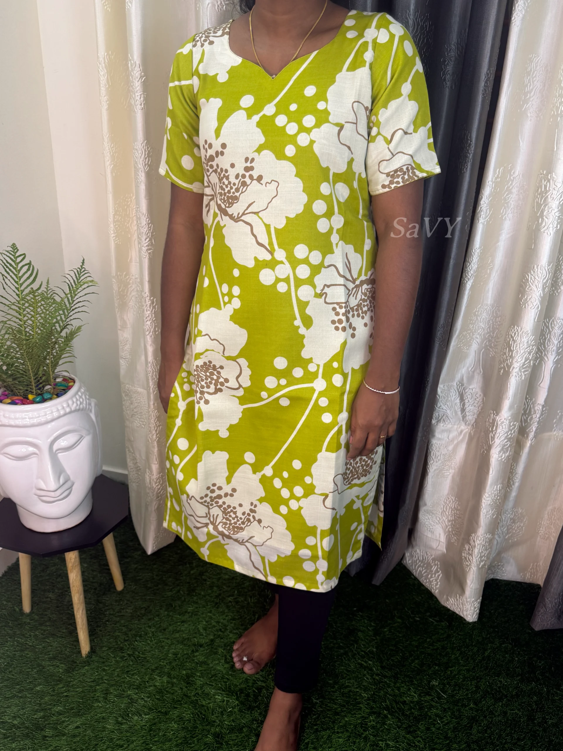 This fabric carries a half-white flower with Fresh Lime base. It’s a college or work wear for every wardrobe. It comes with notch neck and Basic Sleeve.